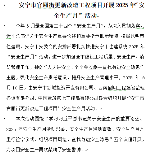 安寧市官廂街更新改造工程項目開展2025年“安全生產(chǎn)月”活動