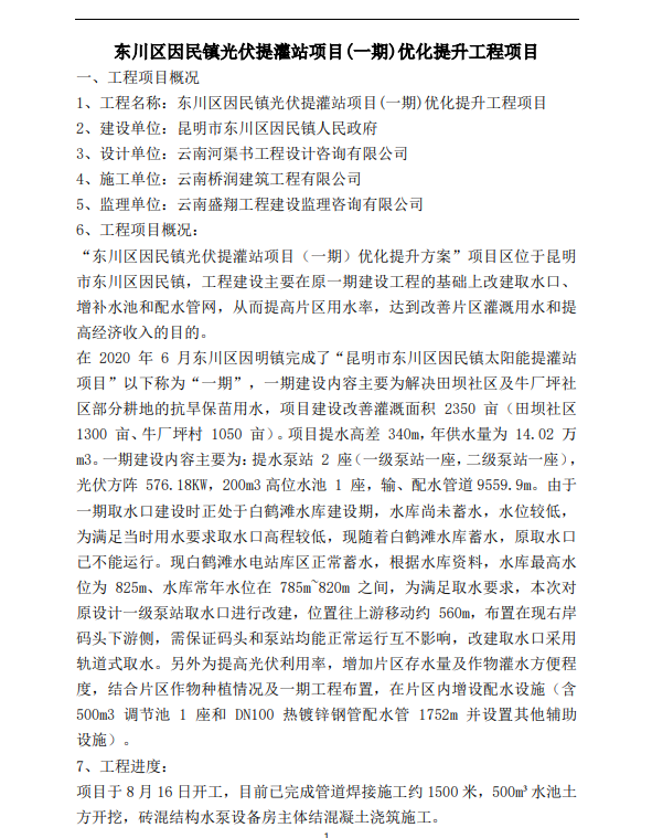 東川區(qū)因民鎮(zhèn)光伏提灌站項目(一期)優(yōu)化提升工程項目