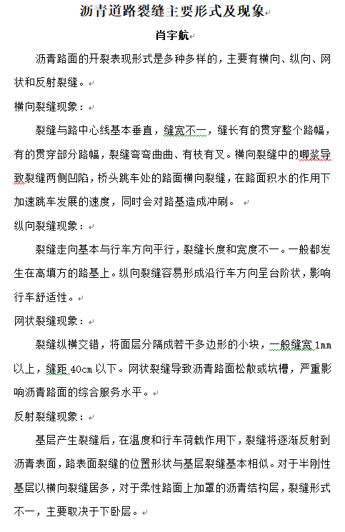 瀝青道路裂縫主要形式及現(xiàn)象——肖宇航