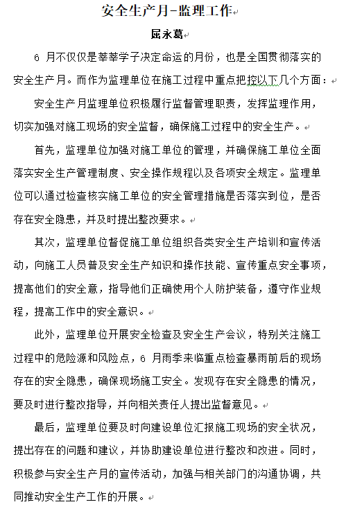 安全生產(chǎn)月-監(jiān)理工作——屈永葛