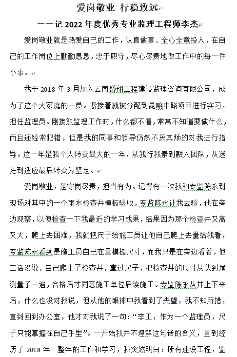 愛崗敬業(yè) 行穩(wěn)致遠 ——記2022年度優(yōu)秀專業(yè)監(jiān)理工程師李杰