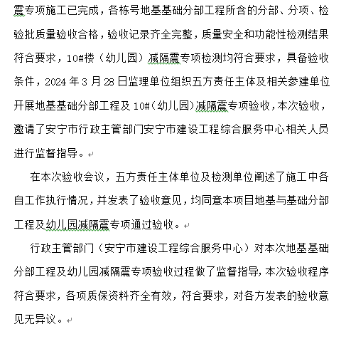 安寧市官廂街更新改造工程項(xiàng)目(南地塊) 地基與基礎(chǔ)分部工程及幼兒園減隔震專項(xiàng)驗(yàn)收