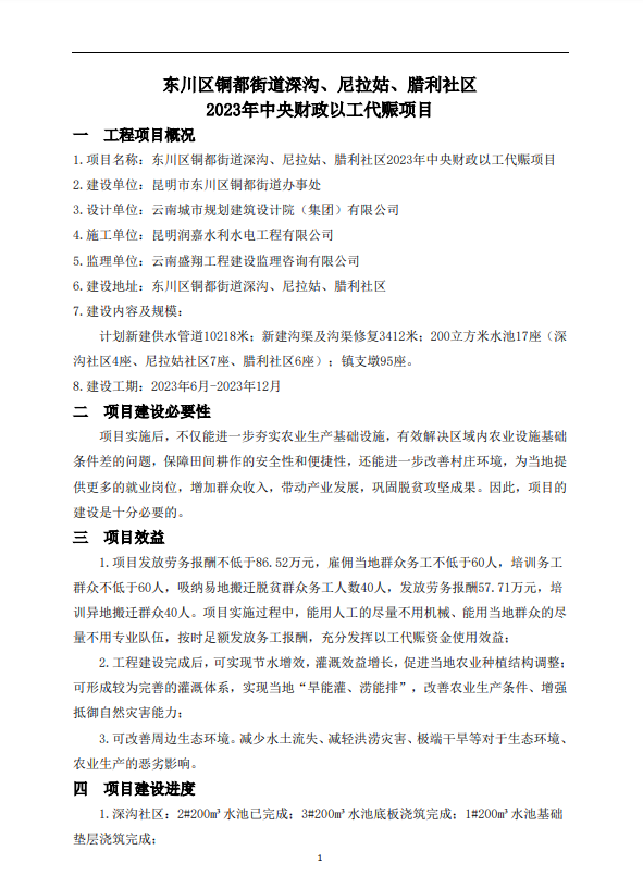 • 東川區(qū)銅都街道深溝、尼拉姑、臘利社區(qū) 2023年中央財(cái)政以工代賑項(xiàng)目