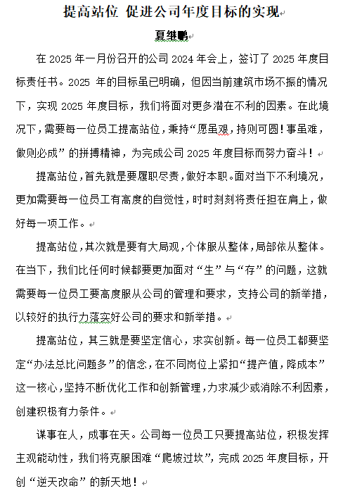 提高站位 促進(jìn)公司年度目標(biāo)的實(shí)現(xiàn)——夏繼鵬
