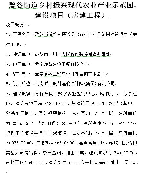 碧谷街道鄉(xiāng)村振興現(xiàn)代農(nóng)業(yè)產(chǎn)業(yè)示范園 建設(shè)項目(房建工程)