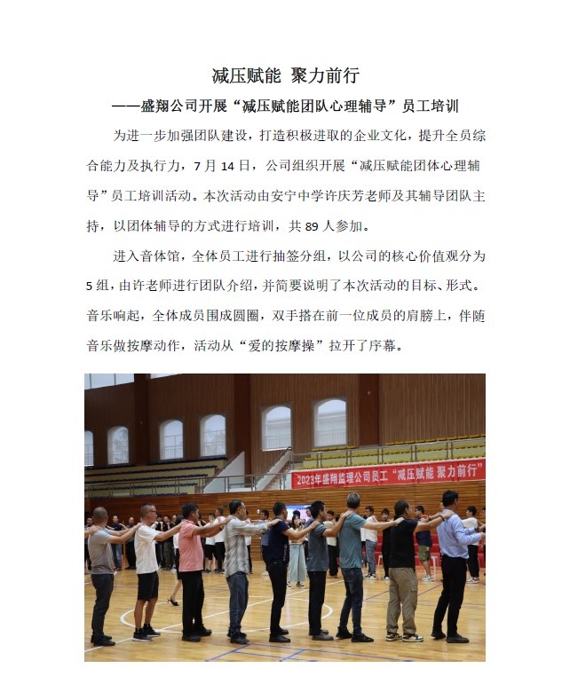 減壓賦能 聚力前行 ——盛翔公司開展“減壓賦能團隊心理輔導”員工培訓