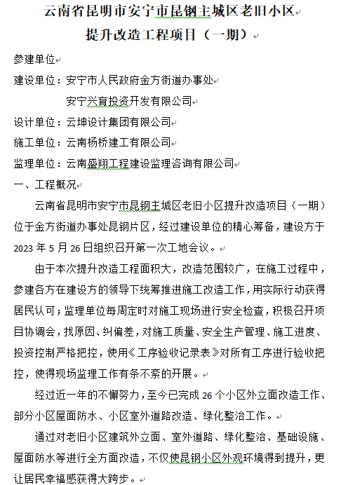 云南省昆明市安寧市昆鋼主城區(qū)老舊小區(qū)提升改造工程項(xiàng)目(一期)