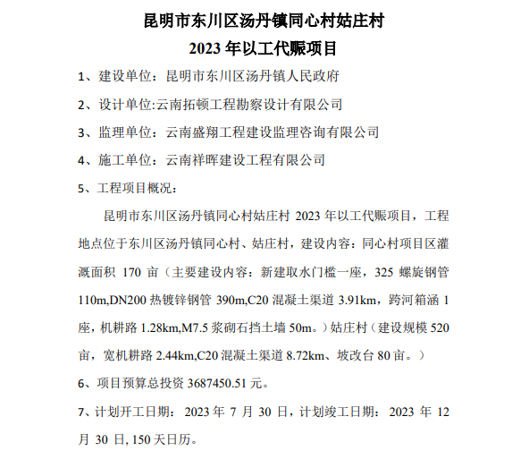 昆明市東川區(qū)湯丹鎮(zhèn)同心村姑莊村 2023年以工代賑項目