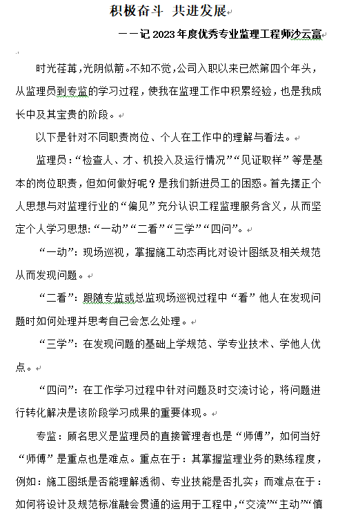 積極奮斗 共進發(fā)展 ——記2023年度優(yōu)秀專業(yè)監(jiān)理工程師沙云富