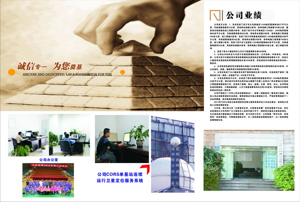 幾年來,我公司力求“以質量求生存,以信譽求發(fā)展”的宗旨服務于社會,在社會各屆的大力支持和廣大工程技術人員的辛勤工作下,測繪項目遍及云南省各地區(qū),為云南省地方建設做出了積極的貢獻。在今后的工作中,公司依靠“信守合同、科技領先”的經營理念,不斷提高測繪水平,以一流的測繪成果服務客戶,以一流的測繪業(yè)績奉獻社會。