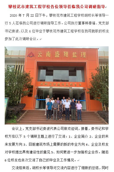 攀枝花市建筑工程學校各位領導蒞臨我公司調研指導