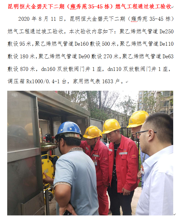 昆明恒大金碧天下二期(雍秀苑35-45棟)燃?xì)夤こ掏ㄟ^(guò)竣工驗(yàn)收
