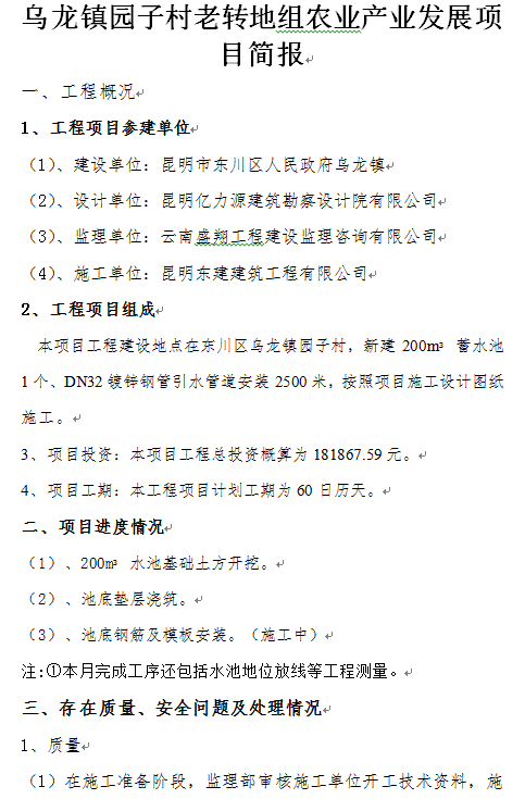 烏龍鎮(zhèn)園子村老轉(zhuǎn)地組農(nóng)業(yè)產(chǎn)業(yè)發(fā)展項(xiàng)目簡報(bào)