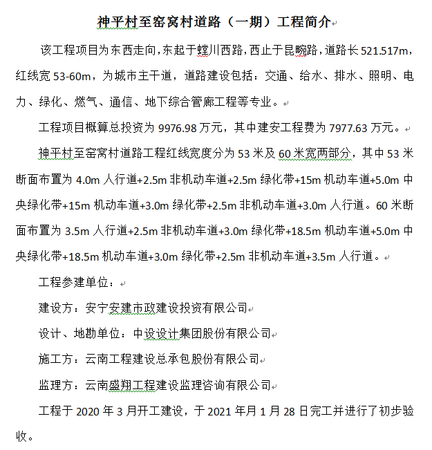 神平村至窯窩村道路(一期)工程初步驗(yàn)收