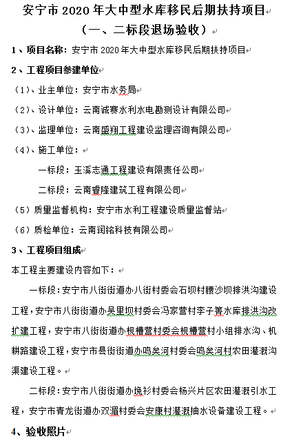 安寧市2020年大中型水庫移民后期扶持項目 (一、二標(biāo)段退場驗收)