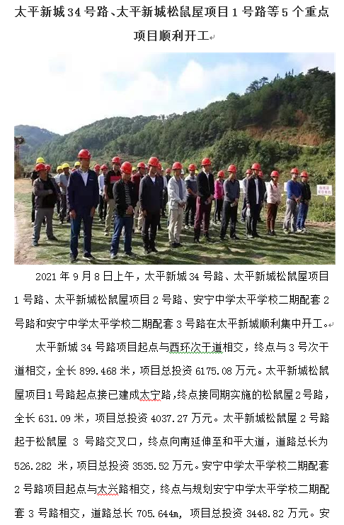 • 太平新城34號(hào)路、太平新城松鼠屋項(xiàng)目1號(hào)路等5個(gè)重點(diǎn)項(xiàng)目順利開工