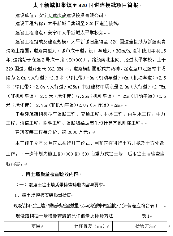 太平新城舊集鎮(zhèn)至320國道連接線項(xiàng)目簡報(bào)