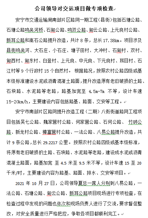 公司領(lǐng)導(dǎo)對交運(yùn)項(xiàng)目做專項(xiàng)檢查
