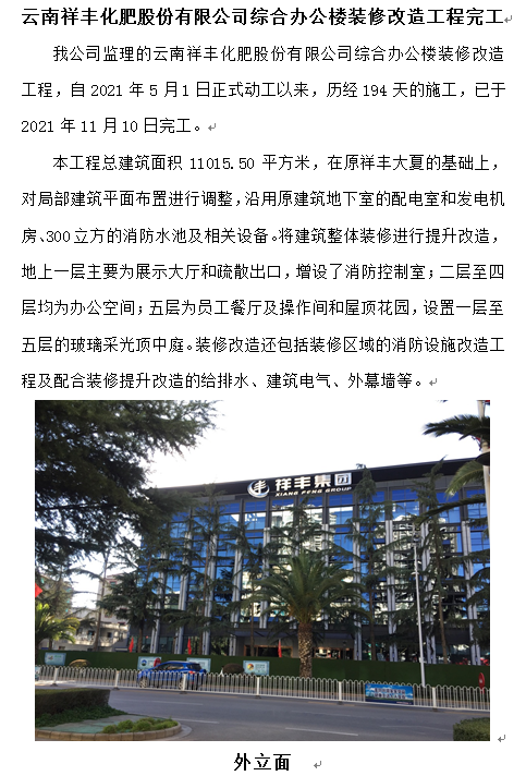 云南祥豐化肥股份有限公司綜合辦公樓裝修改造工程完工