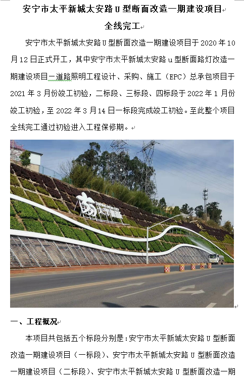 安寧市太平新城太安路U型斷面改造一期建設(shè)項(xiàng)目 全線完工