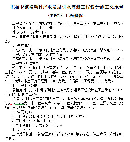 拖布卡鎮(zhèn)格勒村產(chǎn)業(yè)發(fā)展引水灌溉工程設(shè)計(jì)施工總承包(EPC)工程概況
