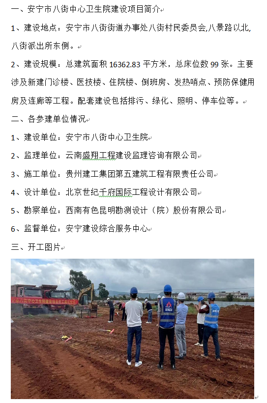安寧市八街中心衛(wèi)生院建設(shè)項(xiàng)目開工簡訊