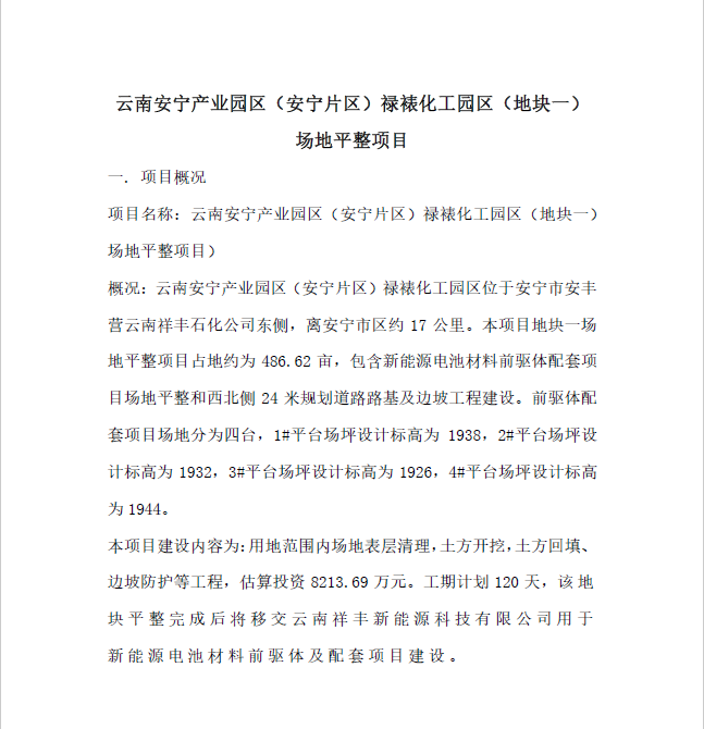 云南安寧產(chǎn)業(yè)園區(qū)(安寧片區(qū))祿裱化工園區(qū)(地塊一) 場地平整項目