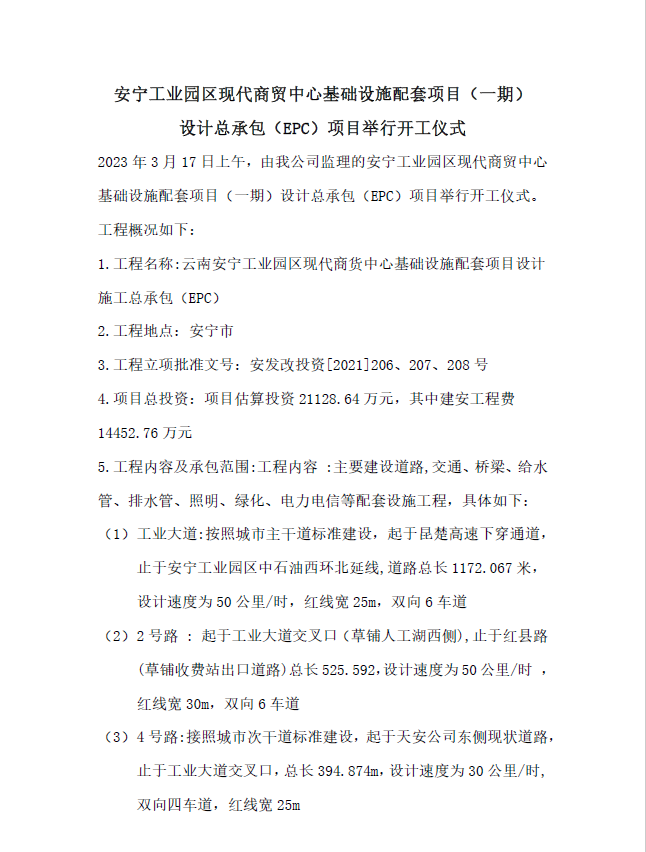 安寧工業(yè)園區(qū)現(xiàn)代商貿中心基礎設施配套項目(一期) 設計總承包(EPC)項目舉行開工儀式