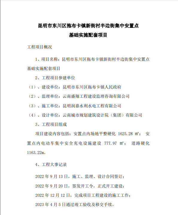 昆明市東川區(qū)拖布卡鎮(zhèn)新街村半邊街集中安置點基礎實施配套項目通過竣工驗收