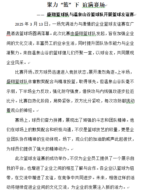 聚力 “籃” 下 誼滿賽場 —— 盛翔籃球隊(duì)與溫泉山谷籃球隊(duì)開展籃球友誼賽