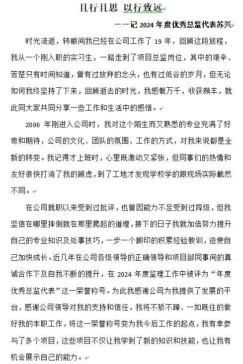 且行且思 以行致遠(yuǎn) ——記2024年度優(yōu)秀總監(jiān)代表蘇興