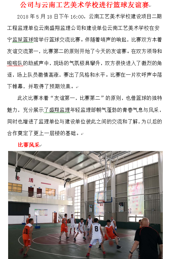 公司與云南工藝美術(shù)學(xué)校進行籃球友誼賽