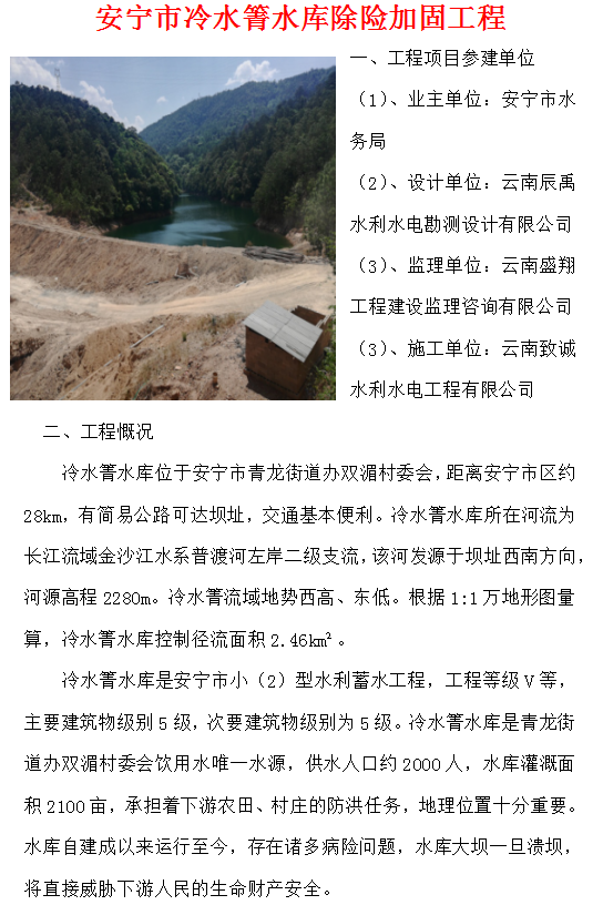 安寧市冷水箐水庫除險加固工程