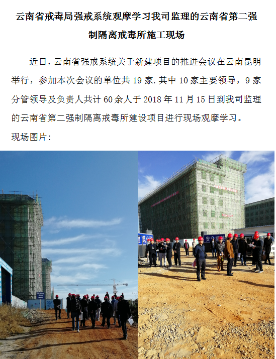 云南省戒毒局強戒系統(tǒng)觀摩學習我司監(jiān)理的云南省第二強制隔離戒毒所施工現(xiàn)場