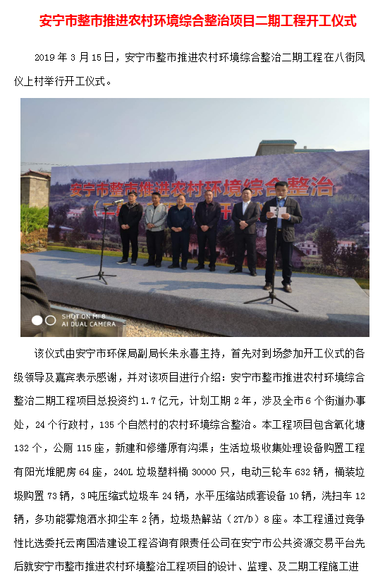 安寧市整市推進(jìn)農(nóng)村環(huán)境綜合整治項(xiàng)目二期工程開工儀式