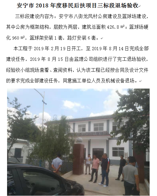 安寧市2018年度移民后扶項目三標(biāo)段退場驗收