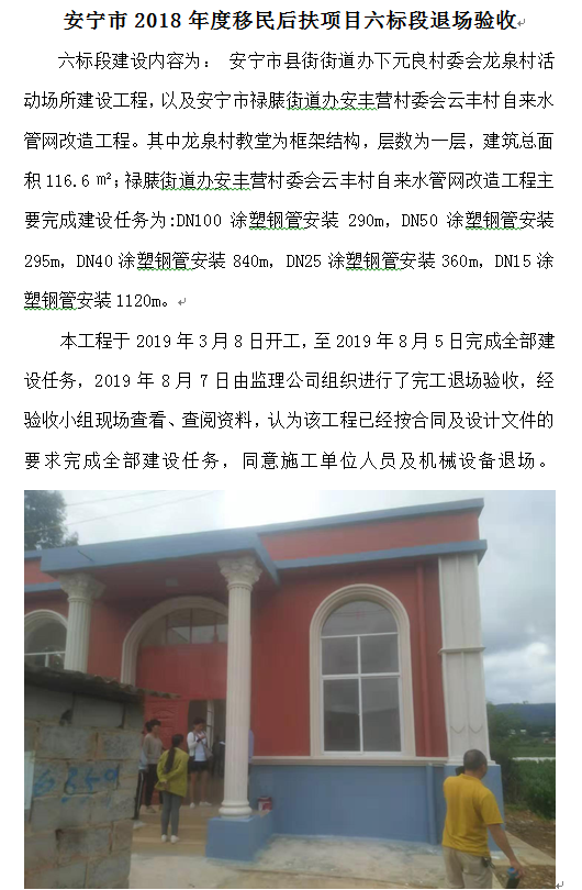 安寧市2018年度移民后扶項目六標(biāo)段退場驗收