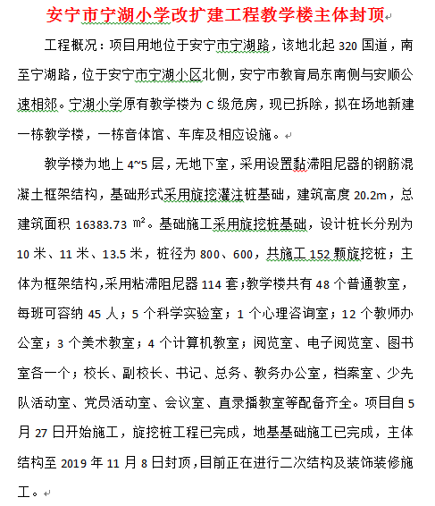 安寧市寧湖小學改擴建工程教學樓主體封頂
