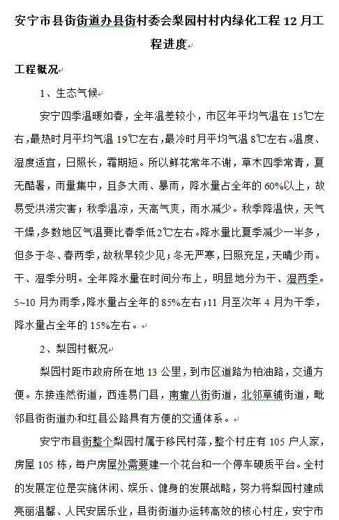安寧市縣街街道辦縣街村委會梨園村村內(nèi)綠化工程12月工程進度