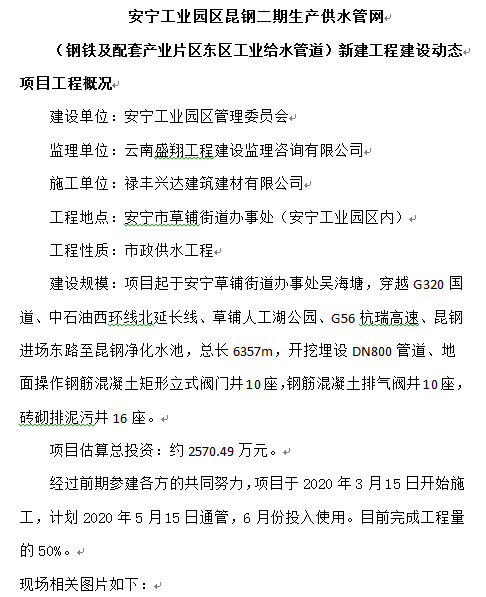 安寧工業(yè)園區(qū)昆鋼二期生產(chǎn)供水管網(wǎng)